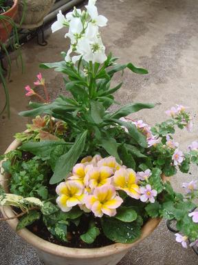 今日は曇りで 寒いです。。。 私は今日から3連休初日はガーデニングをしようとまえまえから思っていたので朝一からHCへ行き 土やらお花などを買ってきました~早速 寄せ植えを作ってみたけど。。。優しい感じに見えますでしょうか一重のストック・バコパ・プリムラ・ロータスランド・ビオラ モコ。。。ついつい 多肉も買っちゃいましたちょっと 日当たりが悪かったのか 開き気味ですね。。。 ベランダでは ペラルゴニウムのイングラントバイオレットが大人色で咲いています シャコバサボテンにもたくさんの蕾を発見来月が楽しみですね最近 主人だけじゃなく息子もお弁当持ちなんです男二人の弁当は品数と量がいるので 毎日 悩みの種ですわ。。。息子はガッツリ弁当と もう一つサラダを持っていくのでデカ弁二段毎晩 洗い物が大変です息子から 「どうしてもサラダが食べたい」というので 仕方がないんだけどね早く お嫁さんを貰ってくれないかしら。。。息子 19歳。。。まだまだですね(笑) では 今日はこのへんで~
