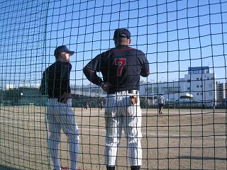 生涯最初で最後のプレゼンも終わり、早速次の日の日曜日に、野球の練習に行ってきました。右が監督で、左が抑えのエースです。プレゼンでは締めを仰せつかった二人です。こちらはうちの嫁で、キャプテンをやらせていただいてます。子供はだれが見てんだ。