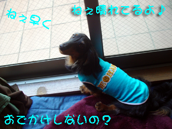 こんばんわ今日も午前中はわんこ集会へ行き、おまけは先輩ダックス で超優秀なコウタ君に遊んでもらいボールやおもちゃをとってこいしては 人の前でちゃんとそれを置いて「ワン」翻訳:「投げて下さい」とお願いしてはまたとってこいするコウタ君の後をずーっっとチョロチョロついて回ってましたよいわゆるのふんってやつですねあいつはあいかわらずお散歩バッグを持ってる人のところへ行ってはお座りを決め込みとうとう言われました・・・「レオン君 公園を食堂だと思ってるのね」返す言葉もありません・・・というより お礼を言ってるか謝ってばかりいる私です公園食堂でたらふく食べて元気になってしまった あいつ公園で遊ばず何故か お部屋でおおはしゃぎ今では滅多に遊ばなくなった 青いボールを相手にLets Groove Do The Hustle状態(団塊の世代のソウルフル応援歌)くわえるには大きすぎで すっごい固いボールさすがのあいつも破壊不可能あいつのハッスル動画はこちらへはしゃぐのはいいけど すべって転んで足をくじいたりしないで欲しいな~・・・とハラハラしつつ 笑ってしまう私さすがの おまけもこの騒ぎにはひいてます・・・でもどういうわけかあいつにばかりカメラを向けると写真童として参加することは譲れないらしい