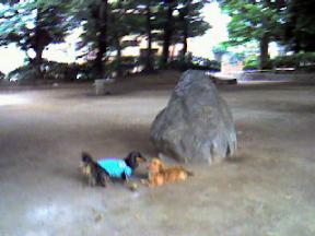 こんにちわすっかりご無沙汰してしまいまいしたまだ夏休みでもないのに 我が家には何故か親戚が集合したりしてちょっとバタバタしてました・・・どんなことがおきようとはあいかわらずでおまけは例のわんこ集会にて 社会勉強続行中優秀な先輩ダックス コウタ君のパパに励まされて先日はじめてリードを離してみましたわんこが集まるこの公園は周りが木々に囲まれて 障害物もないので安全といえば安全ですがそれでも私の心臓はバクバク手と額に汗汗まさに 親の気持ち子知らず・・・ボールをとってこいしてるコウタ君の後をひたすら金魚の糞のようについてまわる おまけあんまり おまけがコウタ君にくっついて走るのでコウタ君の兄弟の豆ちゃんが 心配になって割り込む場面も実はこの豆ちゃん・・・あいつのことが大好きなようです小さいから届かないけど あいつに乗ろうとしますどうあがいても届かないので こんな行動にあいつのお○ん○んを なめてますあいつもまんざらではないようですこの妙な光景は わんこ集会に集う親たちにの間でもかなり話題になってます・・・「豆ちゃんおっぱいすってるみた~い」と言われたりします・・・「れおん君怒らないのね、優しいのね」と褒めて頂きましたがそりゃ怒らないでしょう・・・あいつまんざらでもないのだから・・・おまけが社会勉強にいそしむ間あいつは無銭飲食の腕をあげました三軒茶屋にレトロな氷屋さんがあるのですがそこのお爺さんが犬好きなのをいいことにお店の前でお座りをきめこみシロップのかかってない氷をもらうようになりました・・・お爺さんはあいつのことを「黒べぇ」と呼び私にかき氷をおごってくれます昔ながらのかき氷とっても美味しいです「ありがとう黒べぇ おまえのおかげだよ」と心の中でつぶやく私そんな黒べぇ爺さんの一日をしめくくるのは最近手にいれた新兵器のファーミネーターで せっせとグルーミング広告に偽りなしおもしろい程 むだ毛がとれます芝刈りをしてるくらいファーミネーター前と後では はっきりくっきり違うんです黒べぇ爺さんの芝刈り私のストレス発散になってます黒べぇ爺さんのおかげで今年の夏はおいしいかき氷にありつける私です