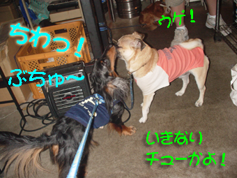 こんにちわ昨日今日と雷がすごいです雷の話題は明日にとっておいて今日は昨日のお別れ会のお話ですわんこ集会やJINJINでおなじみのあのPET OKジンギスカン料理のお店が7月30日をもって閉店しました夕べはみんなで最後のご挨拶にこのところ あいつの腸内菌騒ぎで わんこ集会に参加してなかったのでおまけは久しぶりに会う豆ちゃん(チワパグミックスちゃん)に仲良し攻撃最後の晩とあってお友達もたくさんいらっしゃってましたちょっとシャイなビーグルちゃんフラットコーテッドではなく13才のセッターちゃん写真はとれなかったのですが、フェレットをつれていらっしゃる方もオーナーのおじさんは本当に動物がお好きな優しい方でお店がなくたってしまうのはとっても残念です最後だというので 私はもうすっごい勢いで&食べちゃいましたが・・・腸内菌がようやくバランスを取り戻し うんPも朝晩2回にやっとおちついたのでWANSには先にご飯を食べさせてから来ましたごめんよ~ おまけごめんよ~ あいつでも最後だから私は存分に食べるし飲むぞ~ペットOKのジンギスカンなんてもうないだろうな・・・しかも歩いて行けたので帰りの心配せず三昧できたのにでも、キャッチボールが得意なコウタ君とあいつをその気にさせる豆ちゃんにはこれからも公園で会えると伺って、 ちょっとホッとしましたコウタ君と豆ちゃんのパパさん 長い間お疲れ様でした~