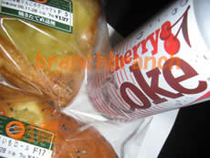 雨が止んでいたのでゴミ出しの用事と返却用DVDをポストに投函の用事があったので外出し、ついでに少しだけ走って帰り際にコンビニに寄ったらアレが目に止まった。 九州さつまいもロール・・・。・・・呼んでる? ひょっとして呼んでる?買って欲しそうな感じで並んでいたので、思わず手に取ってしまいました^^;という事でまたまたまた、九州さつまいもロールを食べる事に^^;美味しいんですけどね、買い食いは良くないなぁ。朝ご飯って事で^^; ・・・次はもう止めておこ。。。ついでに購入したCh○rr○Co○e。これって色んなところで売られてるような・・・?なんか雑貨屋とか輸入品の店に行くとたまに見ますけど、飲んでみたらなんか薬品っぽい味がします。。。なんだろう、チェリーの酸味料とか甘味料の味か何かなのかな?舌が痺れるよな感じがします。結構そういうの敏感なので苦手な味だ。。。やっぱコーラは瓶に限る?(謎)普通の赤ラベルのコーラは美味しいんですけどねぇ。。。