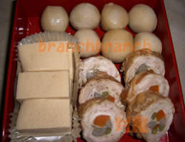 盛り付けをしようと思ったら圧倒的な量でびっくりでした(笑) まさかこんなにドエライ量になるとは思ってもみなかったから^^;重箱三段重を1つ用意、オードブル用箱2段重を1つ、合計5段分のおせち料理を用意。前回の記事でも書いたのですが、有頭小えびが無かったのが残念。アレが無いとどうもインパクトに欠ける・・・。【炊き合わせと焼き豚箱】↑の焼き豚は既製品で、塊が安かったので購入。 その他に高野煮、里芋煮、コンニャク煮締めがぎっしり^^;【肉巻きロール乱舞】↑この肉巻きロールが美味しかった。 一口味見したのですが丁度良い味加減でした^^ 大量に作ったんでオードブル箱1段を丸々占領中! ゲリラだこいつら!?【かまぼこ、煮物、焼き豚】↑取り合えず入りきらない分とかを入れてます(笑)【煮物色々】↑しいたけ、ごぼう、人参、金時人参、竹の子、ちくわなどを煮付けたもの。・・・あっ?!やべぇ、ブリの照り焼き忘れてた^^;冷蔵庫の中でブリ野郎が待ってるぜぇ。。。
