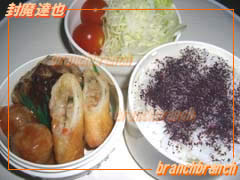 81回目の節約男のお弁当作りです^^ ロールパンとか焼いて持っていかせると、普通のお弁当は実にシンプル過ぎて面白く無いですねぇ(笑) ◆ゆかりご飯 20円 ◆手作りハンバーグ 25円 ◆春巻き 20円 ◆ミートボール 30円 ◆サラダ 20円 ◆味噌汁 20円 合計金額 135円 以上です^^ 今日はやっとこさ寒さもマシになりました>< 一体どれだけ寒かったら気が済むんだろうか。。。 昨夜なんてエアコンをつけてない時の室内温度が14度だった。。。 そりゃ、バニラ(ロップイヤー)も暴れるわ(笑) 寒かったもんなぁ。。。 ≫食器洗乾燥機対応。優れた耐熱性&強度。女性向けのお弁当箱。フォークケース付保温ジャー付ラ... ≫超軽量コンパクト設計の保温ケース(魔法びん構造)がお弁当箱サイズを実現サーモス保温弁当箱/... ≫超軽量コンパクト設計の保温ケース(魔法びん構造)がお弁当箱サイズを実現サーモス保温弁当箱/...□■□■□ 【実際に利用したオススメ店(一部)】 □■□■□ ≫【スイーツ】亀のすけ ≫【キッチン・パン材料】ホームメイドショップKIKUYA ≫【アクセサリー】いいものあるよ。アクアジュエリー ≫【ファッション】イーザッカマニアストアーズ ≫【パン】エルクアトロギャッツ BAGEL SHOP ≫【カニ】フーズランド北海道 ≫【ブーツ】アウトレットシューズ ≫【スイーツ】オーガニックサイバーストア ≫【ゲーム】にこにこ道 ≫【ゲーム】SHOP2GO ≫【家電製品】家電のSAKURA 楽天市場店 ≫【パソコン関連】ベンキュージャパンeshop ≫【雑貨】携帯グッズ専門店ストラップヤ ≫ないものもあったりする!楽天市場TOP※TOPページ中ほどにも実際に利用した多数のオススメ店舗を掲載しております^^□■□■□【★日別掲載記事ショートカット★】□■□■□ ☆★☆2008年2月7日の日記一覧☆★☆☆★☆2008年2月6日の日記一覧☆★☆☆★☆2008年2月5日の日記一覧☆★☆□■□■□ 【Branch特集コンテンツ】 □■□■□★Branch封魔達也の情報サイトTOP★★2008年新春レディース福袋特集★★ブログ初心者の為のブログの細かい設定方法などのアドバイス★★Branch 新作ゲーム特集 2008年2月発売分★★Branch ご当地キティ&キュージョンまとめ★★Branch UFOキャッチャー(クレーンゲーム)現在までの一覧★★Branch キュージョンストラップ特集★★Branch 楽天トラベル 全国の旅行一覧ページ★★Branch 男の料理・手作りお弁当メニュー全集(随時更新)★★Branch 管理人封魔達也の手作りスイーツ全集TOPページ(随時更新)★★Branch 管理人封魔達也の料理全集TOPページ(随時更新)★★Branch 溺愛しまくりのロップイヤー話★(随時更新)★Branch 管理人のお菓子尽くし日記まとめ★(随時更新) Branch封魔達也の情報サイトでは今まで購入した内の半数近くの商品をお買い物レビューにて公開しています♪ 当ブログの内容が気に入ってくれた方は、TOPページ上部にありますランキングバナーを毎回来る度にクリックして頂けると幸いです^^ 出てきたページは”表示された後”は容赦なく閉じて構いません^^ ブログ初心者の方の為のアドバイスページも設置しておりますので、初めてブログを開設された方はお気軽にご覧下さい^^