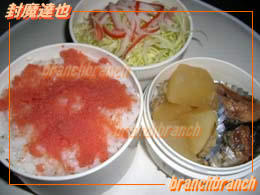 90回目の男の節約お弁当作りです^^ 今回は、たらこご飯にしてみました^^ 見えないですが、2段重ねにしており、真ん中にもたらこがギッシリと詰まっております。 もしかしたら辛いかもしれないなぁ(笑) 後は大根の煮物と、煮秋刀魚でさっぱりと和風に仕上げております^^ ◆たらこご飯 100円 ◆煮さんま 50円 ◆大根の煮物 20円 ◆サラダ 15円 ◆お味噌汁 20円 合計金額約 205円 以上です^^ いやぁ、後10回で100回達成ですけども、100回達成したところで何か豪華になるとか、凄まじいお弁当が出てくるとかは無いのですけども~、続いてるって事が嬉しいもんですねぇ(笑) 作り始めの当初は、正直1ヶ月も続かないんじゃないだろうか?なんて思ったりもしましたが、意外によく続いてる・・・。 まぁ、簡単なものばかり詰め込んでるだけと言えばそうですけども、用意する行動が実に面倒臭いので、我ながら我慢して(笑)続いてるなぁと関心します^^; せめて、重箱くらいデカイお弁当だったら・・・>< ★リビングート 楽天市場店★ ≫ごはん・おかずがたっぷり入る大容量。弁当箱 はし箱付保温ジャー付ランチボックス ≫食器洗い乾燥機対応、超軽量コンパクト設計のお弁当箱。ポーチ付保温弁当箱 メタリックブラック... ≫食器洗乾燥機対応。優れた耐熱性&強度。女性向けのお弁当箱。フォークケース付保温ジャー付ラ...□■□■□ 【実際に利用したオススメ店(一部)】 □■□■□ ≫【スイーツ】コンデイトライ神戸 ≫【スイーツ】亀のすけ ≫【キッチン・パン材料】ホームメイドショップKIKUYA ≫【アクセサリー】いいものあるよ。アクアジュエリー ≫【ファッション】イーザッカマニアストアーズ ≫【パン】エルクアトロギャッツ BAGEL SHOP ≫【カニ】フーズランド北海道 ≫【ブーツ】アウトレットシューズ ≫【スイーツ】オーガニックサイバーストア ≫【ゲーム】SHOP2GO ≫【家電製品】家電のSAKURA 楽天市場店 ≫【パソコン関連】ベンキュージャパンeshop ≫【雑貨】携帯グッズ専門店ストラップヤ ≫ないものもあったりする!楽天市場TOP※TOPページ中ほどにも実際に利用した多数のオススメ店舗を掲載しております^^□■□■□【★日別掲載記事ショートカット★】□■□■□ ☆★☆2008年2月25日の日記一覧☆★☆☆★☆2008年2月24日の日記一覧☆★☆☆★☆2008年2月23日の日記一覧☆★☆□■□■□ 【Branch特集コンテンツ】 □■□■□★Branch封魔達也の情報サイトTOP★★2008年新春レディース福袋特集★★ブログ初心者の為のブログの細かい設定方法などのアドバイス★★Branch 新作ゲーム特集 2008年2月発売分★★Branch ご当地キティ&キュージョンまとめ★★Branch UFOキャッチャー(クレーンゲーム)現在までの一覧★★Branch キュージョンストラップ特集★★Branch 楽天トラベル 全国の旅行一覧ページ★★Branch 男の料理・手作りお弁当メニュー全集(随時更新)★★Branch 管理人封魔達也の手作りスイーツ全集TOPページ(随時更新)★★Branch 管理人封魔達也の料理全集TOPページ(随時更新)★★Branch 溺愛しまくりのロップイヤー話★(随時更新)★Branch 管理人のお菓子尽くし日記まとめ★(随時更新) Branch封魔達也の情報サイトでは今まで購入した内の半数近くの商品をお買い物レビューにて公開しています♪ 当ブログの内容が気に入ってくれた方は、TOPページ上部にありますランキングバナーを毎回来る度にクリックして頂けると幸いです^^ 出てきたページは”表示された後”は容赦なく閉じて構いません^^ ブログ初心者の方の為のアドバイスページも設置しておりますので、初めてブログを開設された方はお気軽にご覧下さい^^