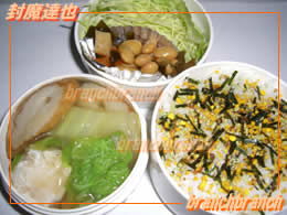 106回目の節約男のお弁当作りです^^ 今週もまたお弁当作りの日々が始まってしまいました^^; 面倒臭いですが、頑張りたいと思います。 今回は海老焼売の上に白菜、薩摩揚げ、ワカメを中華あんで仕上げたものを乗せてある一品です。 野菜不足を少しでも補わないといけませんからね>< ◆のりたまご飯 20円 ◆海老焼売の野菜あんかけ 40円 ◆五目豆 30円 ◆サラダ 20円 ◆お味噌汁 20円 合計金額 約130円 以上です^^ 依然・・・風邪は治ってない状態です^^; 鼻の痛みが少しマシになってきてますが、喉の痛みが取れない。。。 声がガラガラ^^; 今日もイソジンでうがいをして薬を飲んでゆっくりしたいと思います。 【↓こちらの『あきたこまち』を使用しています^^】 ★いそべ米屋 楽天市場店★ ≫★【30kg送料無料】産地直送!生産者限定の検査一等米♪『あきたこまち玄米30kg』★【再調製済... ≫★【30kg送料無料】産地直送!生産者限定の検査一等米♪『ふさおとめ玄米30kg』★【再調製済み... ≫★【30kg送料無料】産地直送!生産者限定の検査一等米♪『ちば28号玄米30kg』★【再調製済み】... ≫★【30kg送料無料】産地直送!生産者限定の検査一等米♪『ひとめぼれ玄米30kg』★【再調製済み...□■□■□ 【実際に利用したオススメ店(一部)】 □■□■□ ≫【スイーツ】コンデイトライ神戸 ≫【スイーツ】亀のすけ ≫【キッチン・パン材料】ホームメイドショップKIKUYA ≫【アクセサリー】いいものあるよ。アクアジュエリー ≫【ファッション】イーザッカマニアストアーズ ≫【パン】エルクアトロギャッツ BAGEL SHOP ≫【カニ】フーズランド北海道 ≫【ブーツ】アウトレットシューズ ≫【スイーツ】オーガニックサイバーストア ≫【ゲーム】SHOP2GO ≫【家電製品】家電のSAKURA 楽天市場店 ≫【パソコン関連】ベンキュージャパンeshop ≫【雑貨】携帯グッズ専門店ストラップヤ ≫ないものもあったりする!楽天市場TOP※TOPページ中ほどにも実際に利用した多数のオススメ店舗を掲載しております^^□■□■□【★日別掲載記事ショートカット★】□■□■□ ☆★☆2008年3月17日の日記一覧☆★☆☆★☆2008年3月16日の日記一覧☆★☆☆★☆2008年3月15日の日記一覧☆★☆□■□■□ 【Branch特集コンテンツ】 □■□■□★Branch封魔達也の情報サイトTOP★★2008年新春レディース福袋特集★★ブログ初心者の為のブログの細かい設定方法などのアドバイス★★Branch 新作ゲーム特集 2008年3月発売分★★Branch ご当地キティ&キュージョンまとめ★★Branch UFOキャッチャー(クレーンゲーム)現在までの一覧★★Branch キュージョンストラップ特集★★Branch 楽天トラベル 全国の旅行一覧ページ★★Branch 管理人封魔達也の手作りスイーツ・男の料理・男のお弁当作り全集TOPページ(随時更新)★★Branch 管理人のお菓子尽くし日記まとめ★(随時更新) Branch封魔達也の情報サイトでは今まで購入した内の半数近くの商品をお買い物レビューにて公開しています♪ 当ブログの内容が気に入ってくれた方は、TOPページ上部にありますランキングバナーを毎回来る度にクリックして頂けると幸いです^^ 出てきたページは”表示された後”は容赦なく閉じて構いません^^ ブログ初心者の方の為のアドバイスページも設置しておりますので、初めてブログを開設された方はお気軽にご覧下さい^^