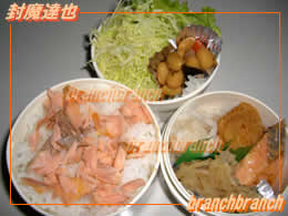 101回目のお弁当作りです^^ 定番中の定番と化してしまった鮭尽くし弁当^^; 手軽すぎる。。。 ◆焼き鮭ご飯 80円 ◆焼き鮭 30円 ◆キムチ野菜炒め 15円 ◆煮魚 20円 ◆サラダ 20円 ◆五目豆 30円 合計金額 約195円 以上です^^ 今日は忙しかった。。。 髪の毛を切りに美容室に行ったり、買い物したり、郵便局に行ったり・・・^^; なんだか物凄く大変な一日でした。 お昼に行った郵便局で起こった出来事です。 郵便受付の窓口で並んでいたら、私の前に並んでいた男性客の順番が来た瞬間、窓口担当だったおばちゃんが・・・ 『いや~~~!●●君やない?元気してた~?』 などとイキナリ男性客と会話を始める。 もちろん手は止まったまま(笑) ウザイ・・・ウザ過ぎる。 会話を楽しみたいなら帰れ^^; 延々と喋り込むおばちゃん。 『大きくなったなぁ~、最初ダレか気付かんかったわ~』 気付かんでいいから仕事をしろ、ここはオマエの娯楽施設じゃない^^; 機関銃のように喋りまくるおばちゃんにブチギレのカウントダウンが始まったところで、後列から発せられる殺気を感じたのか、大慌てで仕事を始めるおばちゃん。 人間、いつ何処でどういうトラブルに遭遇するかわかりませんなぁ^^; 【今回購入のお米↓】 ★いそべ米屋 楽天市場店★ ≫★【30kg送料無料】産地直送!生産者限定の検査一等米♪『あきたこまち玄米30kg』★【再調製済... ≫★【30kg送料無料】産地直送!生産者限定の検査一等米♪『ふさおとめ玄米30kg』★【再調製済み... ≫★【30kg送料無料】産地直送!生産者限定の検査一等米♪『ちば28号玄米30kg』★【再調製済み】... ≫★【30kg送料無料】産地直送!生産者限定の検査一等米♪『ひとめぼれ玄米30kg』★【再調製済み...□■□■□ 【実際に利用したオススメ店(一部)】 □■□■□ ≫【スイーツ】コンデイトライ神戸 ≫【スイーツ】亀のすけ ≫【キッチン・パン材料】ホームメイドショップKIKUYA ≫【アクセサリー】いいものあるよ。アクアジュエリー ≫【ファッション】イーザッカマニアストアーズ ≫【パン】エルクアトロギャッツ BAGEL SHOP ≫【カニ】フーズランド北海道 ≫【ブーツ】アウトレットシューズ ≫【スイーツ】オーガニックサイバーストア ≫【ゲーム】SHOP2GO ≫【家電製品】家電のSAKURA 楽天市場店 ≫【パソコン関連】ベンキュージャパンeshop ≫【雑貨】携帯グッズ専門店ストラップヤ ≫ないものもあったりする!楽天市場TOP※TOPページ中ほどにも実際に利用した多数のオススメ店舗を掲載しております^^□■□■□【★日別掲載記事ショートカット★】□■□■□ ☆★☆2008年3月10日の日記一覧☆★☆☆★☆2008年3月9日の日記一覧☆★☆☆★☆2008年3月8日の日記一覧☆★☆□■□■□ 【Branch特集コンテンツ】 □■□■□★Branch封魔達也の情報サイトTOP★★2008年新春レディース福袋特集★★ブログ初心者の為のブログの細かい設定方法などのアドバイス★★Branch 新作ゲーム特集 2008年3月発売分★★Branch ご当地キティ&キュージョンまとめ★★Branch UFOキャッチャー(クレーンゲーム)現在までの一覧★★Branch キュージョンストラップ特集★★Branch 楽天トラベル 全国の旅行一覧ページ★★Branch 男の料理・手作りお弁当メニュー全集(随時更新)★★Branch 管理人封魔達也の手作りスイーツ全集TOPページ(随時更新)★★Branch 管理人封魔達也の料理全集TOPページ(随時更新)★★Branch 溺愛しまくりのロップイヤー話★(随時更新)★Branch 管理人のお菓子尽くし日記まとめ★(随時更新) Branch封魔達也の情報サイトでは今まで購入した内の半数近くの商品をお買い物レビューにて公開しています♪ 当ブログの内容が気に入ってくれた方は、TOPページ上部にありますランキングバナーを毎回来る度にクリックして頂けると幸いです^^ 出てきたページは”表示された後”は容赦なく閉じて構いません^^ ブログ初心者の方の為のアドバイスページも設置しておりますので、初めてブログを開設された方はお気軽にご覧下さい^^