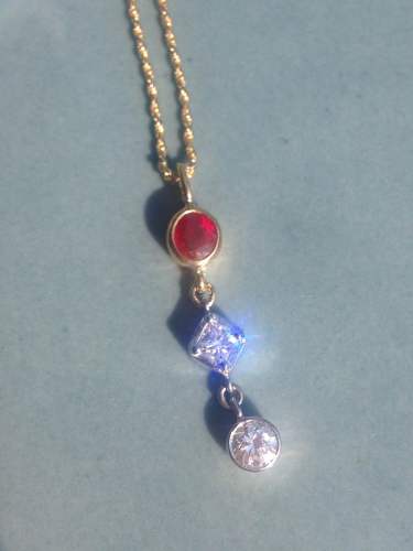 今年の、私のジュエリー作品の写真です。お客様のお祖母様、お母様のダイヤモンド・ジュエリーのリメイクです。3ストーン・ネックレスを作成することになり、ルビーを加えました。3ストーンネックレス:ルビー&ダイヤモンド18金イエローゴールド(ルビー部分)、プラチナ(ダイヤモンド部分)非加熱・ビルマ産ルビー0.78カラット(透明度高い、真紅)一番下のダイヤモンドは約0.3カラット、VS1、Dこの3ストーン・ネックレスは、周りの人々にもとても評判が良いデザインです。早速、同じデザインのネックレスが欲しいという方々がいて、ご注文くださいました。ポイントは、真ん中に四角いダイヤモンドを配置しましたので、個性的です。宝石をセッティングしている土台のベゼルは、分厚めにゴージャスにお作りしました。3個の宝石は固定せず、小さなループでつないだので、ゆれるデザインです。お客様にもとてもご満足いただけました。ご感想をいただきました。お便りの一部分を掲載させていただきます。「無事ネックレスを受け取らせていただきました。箱を開けた瞬間、あまりに神々しくて、何も言えませんでした。私が身につけていいのだろうかと…宝石の輝きが尋常じゃないのですね!でもきっと毎日身につけさせていただくことになると思います。光にかざすと本当に美しくて、ずっと見ていたいというのがよくわかりました。・・・さすがブルーシャ様です!美しさには絶対的な答えがあって、本物のアーティストとはそれを1発で掴み取ることができる人のことなんだなぁと思いました。まだまだお礼をお伝えしたいのですが、またゆっくりご連絡させてください。」ありがとうございます。感謝いたします☆