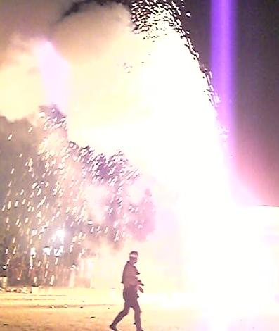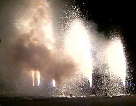 降り注ぐ火の粉を浴び、最後に火が下に抜けるときに爆発する「はね」で終わります。