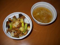 生姜の千切りを少しのせて。 キャベツのコンソメスープ。