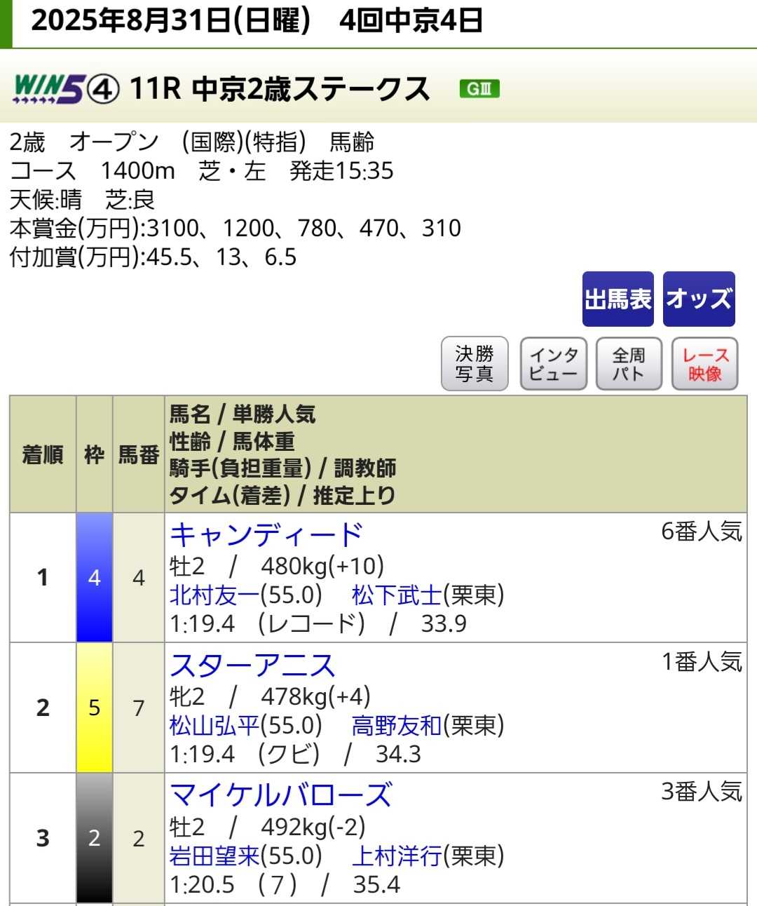 土曜日の夕方に 中京2歳S の 前日最終オッズ を 観て...