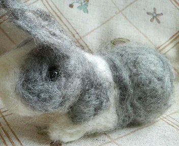 6月に行なわれた『ハッピーうさぎフォーラム』の作品紹介です。今回で、全作品の紹介が終わります!!まずは、我が家のうさぎ。モデルはじぇるです。私の初イベントが終わるのを待って、お月様に旅立ちました。ツーショットを撮っておけばよかったと後悔。最後まで、飼い主思いの、いいうさぎさんでした。享年11歳7ヶ月。元気に長生きしてくれました。 次は、同じグレパン仲間のととちゃん。 爆睡うさぎさん。 たっちうさぎさん。 スフィンクスうさぎさん。以上32作品の紹介でした。 当日、友人にお土産に作った、ちびちび羊毛うさぎさん達。この子達は、1円玉に乗るくらい小さな子達です。 モデルになってもらった子達は、半分以上おウチにもらわれていきました。(強制的に引き取らせたともいう)ありがとう~~~ 羊毛うさぎ、販売しています。 ↓ ↓ ↓