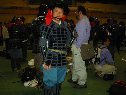 キャーーーうれし、はずかし、こんな写真を掲載する度胸があるとはへ、へ、へ、似あわね~~~という声がどこからか聞こえてきそうでござる。先週の日曜日、岡崎の家康行列祭りに参加してきました。どう? 足軽装束姿です。足軽とは、下級武士なんですが戦国時代の戦の主役でした。室町幕府の武士からすると、武士ともよべない農民階級からのスカウト兵種ですが、何よりもその戦闘能力および兵の補充のしやすさから、とても重要視されていました。豊臣秀吉は、この階級の出身だし結構時代の花形だったんですよ。なにより、歩兵、弓兵、火縄銃、槍など、柔軟にあたらしい兵器を操作するには、武士の教養などなまじっかもっていない兵の方が、柔軟性がありました。さあ、殿!出陣でござる~~~~!!!なんちゃってさてさて、今年の家康行列は、本当にいい天気でよかったっす。しかし、馬の後ろを歩くのはちょっと怖いな~~いや、けられることじゃなくて馬糞がね。