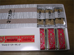 主人の母の誕生日、プレゼントです。今年は、10月1日に間に合いました。よかった~☆左上から、栗のブラウニー、カボチャ型抜き、抹茶&キャラメルチップクッキー、リンゴケーキ、ごまクッキー、チョコチップクッキー、カボチャクッキー、(りんごケーキ)9月末にご近所の方に作ったクッキー達もいっしょに入れて、なんとか箱いっぱいになりました。昨年は、日にちが遅れてしまったけども、今年は誕生日の日に届けられてよかったわ~☆カボチャが型抜きとコロンとしたのとが、2種類になってしまったけどしかたないか~。