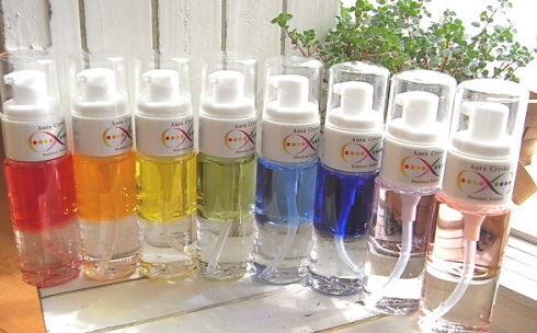 こゆことやってると、色々いただきものをしてうれしいですね♪次のいただきものご紹介はなんと化粧品。オーラクリスタルモイスチャーエッセンス って名前の・・・これ、化粧品だけど・・パワーグッズ・・・だよね 笑くださったのは、地球の掘り出しものの北村さんが懇意にしている、石の仕入先の社長さん。この石の卸し屋さん、かなり「ただもんじゃない」というかw 高波動でクオリティの高い石を揃えてて、そのスジの人ならああ、あそこ、と有名なところらしいですが。そんな方がオリジナルで開発した商品らしいですね。つまりやっぱりただの化粧品ではなさそう 笑ちゅまと2人でぱっと見て、あ、オーラソーマだ、って連想したくらい、オーラソーマに似てるんだけどね。でも、これってオーラソーマとは違って、顔につける化粧品、美容液。もともと肌の弱い方のために開発した、というだけあって非常にナチュラルないいものを使っていて、スクワラン、オリーブ油、ホホバ種子油やアロエベラ葉エキスが基本成分らしい。まずは化粧品としてですね。普通にしばらく使ってみました。普段じぇいど♪は化粧水にはこのローズウォーター、同じメーカーの美容液とクリームという順で基礎化粧品を使ってるのですけれども。このオーラクリスタルモイスチャーエッセンス、一応「美容液」らしいのでちょうど切れた美容液のかわりにしばらく使ってみました。使ったのは「赤」。全色いただいたんですけどね、ちゅまが「おかあさんにはコレがいい」と言うもので??ちなみに「緑はぁ?」と聞くと「いいんだけどね、シュリカン、かな」と言ったもんだから「わーい」と気だけ少し持っていかれてしまいました。お肌のお手入れするのかい、シュリカン。カリフォルニアのきつい日差しと砂漠の乾燥に晒されてすでに10数年w。もう肌は普段からけっこうボロボロ。かなりリッチな感触のものを普段から使っているので、このサラっとした感触にしばらく慣れるのに時間がかかりましたが。日本みたいに湿気が多いところで、しかも夏に暑いところではこのくらい軽い感触のほうがいいでしょうね。気温が上がって暖かくなってきたらいい感じになりました。軽いからと言ってもしっかり薄い膜で油分は補ってくれる。そういう感じですかね。じぇいど♪はまず化粧品としてもなかなか気に入りました。で。エネルギーグッズとしてはいったいどうなのか。↑このページの説明を参照してもらえるとわかるように、各色が各チャクラに対応していてちゃんと意味というかこういうことにいいよ、みたいなのがあるのですね。全8色、だからね、ハートチャクラ用が緑とピンクの2本あるのだけれども。さて。ホントに化粧品だけじゃなくて、エネルギー的になんらかの効果があるものかについては・・・おなじみなにみえ研究所の登場です 笑実験台はいつもどおりワタクシじぇいど♪所長。そしてなんでも目測で結果を出すだけのちゅま主任研究員。まず、顔に塗ると・・「わははははは 笑」と笑いだすちゅま。じぇ「なによ・・・」ちゅ「いやあのね、顔のところのオーラだけ、明るくなっちゃったw」じぇ「明るくなってなんかいいことあるんだろうか?」ちゅ「おもしろい、とか。顔が明るく見える、とか。」や、ほとんどの人には見えないし。面白くてもしょうがないし。でもまあ、エネルギー的にたしかにオーラには作用してるようです。じゃ、こんどは色による違いがあるだろうか?ってことで。左手に赤。そして、一番エネルギー的に遠そうなものってことで紫ってのを右手につけてみました。ちゅ「やーすごい。オーラの色がそれぞれぜんぜん違うよ。 紫をつけたほうはねぇ。なんか・・・茶色、みたいな色になっちゃった。」なるほど。ちゃんと色は「つけた色素」ってことじゃなくてマジでそれぞれエネルギーに違いがありそうですね。そこで所長のいい加減な思いつき。対応するチャクラがあるんだったらねーそれぞれのチャクラに塗ったら、どうよ!ってことで、まずはクラウンのあたり、頭頂にパープルを縫ってみました。ちゅ「おお。チャクラの回転が速くなった!ってことは活性化されてるんだな」じぇ「へえええ。それはすごい。」所長、調子にのってこんどはクラウンにパープル、に加えて胸にグリーンを。眉間にインディゴ、のどにブルー、みぞおちにイエローを縫ってみましたらば。オレンジとレッドは服まで脱ぐのはめんどかったので省略。ちゅ「・・・・それはぁ・・・すごく変な人だよ・・・それぞれの 量がてきとーで違うから、それぞれのチャクラの回転が バラバラの速さで速くなってて・・・おまえ、なにもの。 そういうかんじ。」・・・いっぺんにやるといい、ってことではなさそうですね^^;自分に必要そうなもの一色、でやっぱしたくさん、でしょう。ちゅまは「あたしはインディゴー」。最近ようやく日焼け止めを毎日持ち歩いてお肌を気にし始めたももちゃんは「きいろ