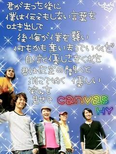 実ゎこのブログのタイトルゎこの曲からもらったものです(笑〃canvas / HY繋いだ手を離した後にもう一度呼び止めたかった君の手を取りにゆく事も呼ぶ事も出来なかったんだまだ温かい手のぬくもり沢山の人込みの中記憶が思い出を描いてく昨日のように想い出す終電へと早歩きの君と僕 云う事なき僕の想いは遠く頬に流れる涙は何を言うの 全ての想いを僕に教えて無理だとしても心の中に「君を描けるよ」素直に言えない僕が嫌になっていくんだ静まる夜の海岸線 白い吐息と月の光見つめ合う二人をそっと優しく包んでゆくの君と歩幅合わせる僕 切り出せない伝えたい気持ち離れていきそうな君を見つめていると言えなかった大きな夜空 ちっぽけな僕 幾千もの星 勇気に変えて君が去った後に 僕は伝えもしない言葉を吐き出して後悔が僕を襲い 何もかも奪い去って行くんだ自信と優しさをくれた君は夜空の闇へと消えてゆく優しい笑みを見せて≪画像クリックでPV見れます≫