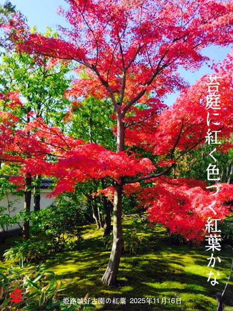 先日、姫路城の西屋敷庭園の好古園に行きました。 苔庭に赤く色付いた紅葉が印象的でし…