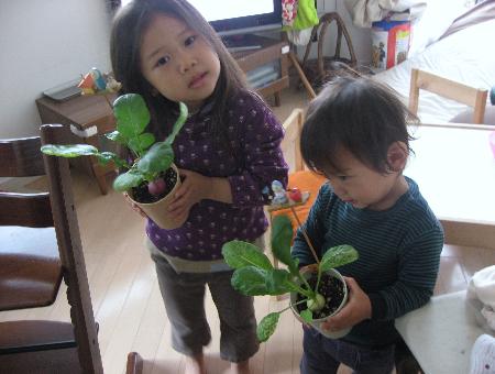 最近のわたし(たち) 今、キッチンガーデニング(家庭菜園です)に大ハマリ☆リラとジュエの蒔いたラディッシュの種はこんなに立派に大きいプランターにたくさん蒔いたものより育ちも早くキレイです^^ 4月からはリラは幼稚園年少さん今日は初めての親子遠足で多摩動物園に行ってきましたー☆ジュエはお留守番。リラはパパに見せる写真を撮ってました解散後も仲良くなったお友達と、わたし(母たち)の知らない歌で盛り上がっておおハシャギ☆わたしの知らない遊び…。こうして成長して、少しずつ親から離れてしまうんだなぁ~なんて… ブラウニーも元気です☆子供たちが寝た後がわたしとの主なコミュニケーションの時間。まっすぐになっててホットドックっぽいブラウニー最近はお友達を迎え入れようと準備中♪お楽しみに あぁ、、そうそう!歌もバリバリ歌ってまーす☆今月もライブありまたアナウンスしなくちゃ