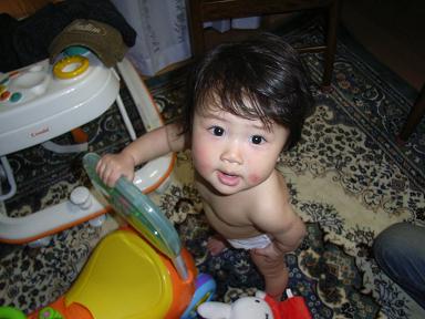 そうそう!またバカ親の話しを聞いてくれよ。リラがブーブに付いているメロディボタンを押してひとりで勝手に踊っていた。めちゃくちゃかわいいじゃないか。別に教えたわけではないのに、プーさんの曲やぶんぶんぶんハチが飛ぶ♪やあわてん坊のおつかい♪で、からだを横に動かし、足踏みをしてリズムに乗っている!これはちょっと予想外の成長のフレーズで初めてやったときにはびっくりした!『お風呂上りでブーブの点検』毎日毎日よく踊っている♪♪昨日はひさしぶりにおじちゃん(コージ兄)とその彼女に会ったリラ。人見知りはしないんだけど、なぜかおじちゃんに大泣き。。彼女に抱っこされると泣き止む。かわいそうなおじちゃんでした。