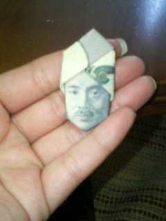 今流行ってるらしくてお客さんから頂きましたwwお守りにもなるそうですwwいろんな「野口さん」がいるみたくてお守りの効果も違うみたいですよ☆本が出てると聞いたので調べてみるとありました・・・・・本当いっぱいだけど「諭吉」で折るには少し勇気が入りますよねwwうわさの本です!!