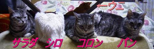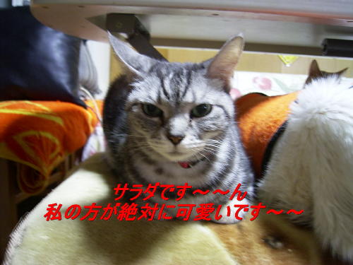 我家のシマシマニャンズの見分けが付かないよ!!!と皆様にからのお問い合わせに本日はお答えすべくシマシマニャンの紹介をばぁ~~まずはρ( ̄∇ ̄o) コレ続いてρ(・・。) コレ ん~~でρ(・д・*)コレ 最後にρ(´ー`) コレ よーーーーくジックリ見て違い判って頂けたかしらね( ̄m ̄* )ムフッ♪何処が違うかって((((((((o_△_)o サァーシランだって私も物君も間違えるんだもん!!!!!だからコロンとサラダには首輪してあるんだもん目印に(o_ _)ノ彡☆ギャハハ!! バンバン!何方か見比べ方法お教え下さいませです(*^日^*)゛グワッハッハ