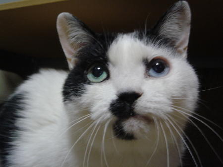 今日も猫の紹介を~( ̄m ̄* )ムフッ♪今日は1匹にしておこう病み上がりだし~(* ̄m ̄)プッ一度に紹介すると日記ネタ減るしぷぷぷぷっ!!(* ̄m ̄)ノ彡_☆ばんばん!て!!!!!事で本日はこの子実家から来たマルちゃんρ(・・。) コレ可愛いしょ~♪美人だすよ~彼女"\( ̄^ ̄)゛ハイ!!でもね実はお婆ですの~ミルクとシロと同じ年なので確か14歳だなぁ~凄く元気ですでも( ̄  ̄) (_ _)うんうん毎晩寝る時に触れ!!!触れ!!私を触るんじゃ!!!と非常に煩い婆す目の色が左右違うの判るかなぁ~病院の先生曰く白猫の左右違う子は結構居るけどマルのように白黒での左右違う子は珍しいそうです( ̄m ̄* )ムフッ♪だからか本猫それを承知してるのか。。。。。結構気位がお高い感があるような。。。。。子猫の時に裏の空き家で潜んで暮してるのを捕獲して来た息子が自分の名前から一文字とってマルて名前を付けたんですがね何故か名付親の彼がお嫌いですウ・・ ウン(._.;)多分ドシドシと歩くからだわねあの子・・・・・ブワッハハ!(▼▽▼)人(▼▽▼)ブワッハハ!!マルちゃん!!何時までも元気で気位高く長生きしてよねo(*^▽^*)o~♪