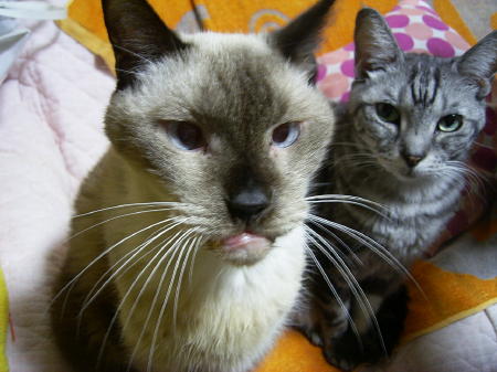 /(-_-)ヽコマッタァ日記のネタがない!!!!猫も大体紹介してしまった気が。。。。。。。(○'ω'○)ん?まだ居たわぁ~( ̄m ̄* )ムフッ♪ミルクとクリちゃん~♪他に居ないか"ノ(-________-;)ウゥーム・・・シマシマニャンでパンとサラダ紹介終わってるし黒黒コンビでアイスも済んだし後はクリとミルク婆ちゃんだけだなぁ~ε-(ーдー)ハァこれ済んだら日記のネタがなくなるだなぁ~(ヘ;_ _)ヘ ガクッまぁ~仕方がないかウ・・ ウン(._.;)んーーーーーて事で今日はミルク婆ちゃんご紹介を~ミルクは物君が結婚する時に実家から連れて来た猫です実家では義父様が毎日お散歩させていたらしくてねミルク今でもたまに散歩に行きたがりますです( ̄∇ ̄;)ハッハッハまぁ~外に出す癖付けたくないので出さないのですがねウ・・ ウン(._.;)シャム猫のミルクは他の猫達と違って毛が1重なので寒さに非常に弱いですシャムてね寒ければ寒い程濃い茶の部分が増えるて御存知でしたかぁ?猫の病院で見せて頂いたシャムちゃんは全身シロに近い子だったのよ~それに比べて我家のミルクブワッハハ!(▼▽▼)人(▼▽▼)ブワッハハ!!茶濃いす(。-_-。 )ノハイまぁ~でもこの婆ちゃん凄い元気でしてね今はですよ~でもウ・・ ウン(._.;)前は1週間に1回は必ず病院に行くて位に色々な病気してくれましたです糖尿もしてねインシュリンも投与してた事もあるですがぁ!!ミルクはそれも克服して今は病院知らずで頑張ってます!本当は我家でミルクが間違い無く一番にこの世を去るのだなぁ~~て思ってたのよね私も物君もウ・・ ウン(._.;)なのでミルクにはな~~んでも好きな物食え!!!食べたいもの食べておけ!!!てねこれが良かったのかは不明ですがこの考え持つようになってからミルクはドンドン元気になったような気がしますです~ミルク!!!好きなもの食べて!元気で長生きするんだぞ!!!!
