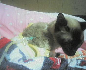 昨日クリが入院してしまいました前から腎臓病の影響で口内炎ができたりしてはいたのですがその都度注射での治療で事なきを得て暮らしてたのですでも最近は口内炎がまったくでなくなくなっててそれって本当は良い傾向では無いんだそうでして口内炎や皮膚等に炎症が出てる間は目で見て判るので直ぐに治療ができるのだけどその症状がでなくってたクリの腎臓の悪化が判らなかったの一昨日からご飯あまり食べないなぁ??て思っていたら昨日朝見たら薄暗い場所でうずくまり涎たらしてた。。。。。なので夕方病院に連れて行ったらそのまま入院になってしまいました採血しての結果は腎臓の数値は振り切り測定不能貧血状態も酷くて非常に悪い状態だとか先生はできるだけの努力はするけど・・・・・・・てクリちゃん!!ガンバ!o( ̄へ ̄o)(o ̄へ ̄)oガンバ!今日お昼前に電話してどんな具合か聞いて見たら昨日と変わりは無いとか。。。。。。でもシーは出てるから治療する事はあるて話でしたクリちゃん!!頑張れ!!パンだってもう駄目かもて言われながら元気に生還してきたんだ君も頑張れ!クリちゃん!!!ミルク婆ちゃんなんてクリちゃんと同じ病気だったけど今では元気一杯だもんだからクリちゃん!!!!頑張って!!!と祈るウニ母です(。--)ノ ハーイクリp(・∩・)qガンバレ!