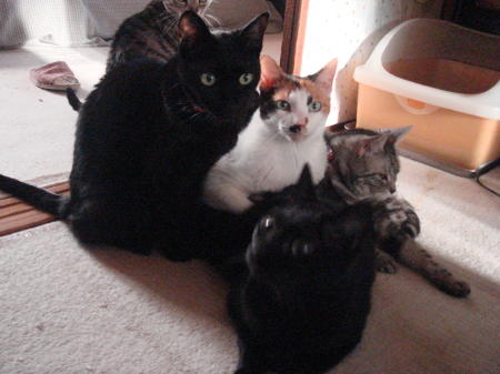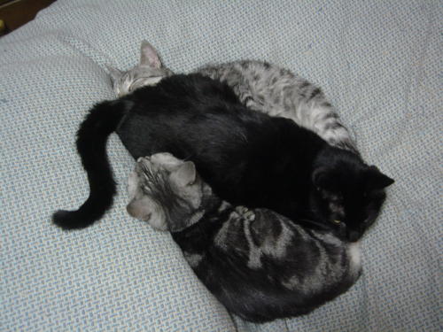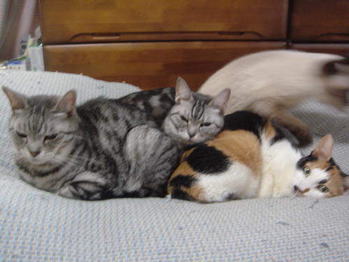 毎朝猫がファンヒーターの前で集まりなにやら相談してる(*..)(..*)コソコソ て感じで相談してる・・・・・・て!!思えるんだが私にはこの光景はρ(・・。) コレどうせろくでもないこと企んでるしょ~君達!今夜は誰と誰が重石になるかぁ~とかたまにはささみなんかくれるまでストでもするかぁ!とか本当最近遊んでくれないすよね~~とか色々話てたりしてこいつ等。。。。。。。。。。て、思う今日この頃である( ̄∇ ̄;)ハッハッハハイハイ~今度のお休みに市場に行ってささみかうかねと、答えたら希望に満ちた目で見つめられたこやつらにρ(・・。) コレおかぁぁああああんタノムジョーーと、言ってるようである(爆)そうそう!!今度の3連休に熊トリオがトリミングにお出かけしたら猫じゃらしで遊ぼうね!だからコロン君今夜は重石は止めてくださいませです!と会合すませたコロンにお願いしてみたウニ母だった・・・・・・・・