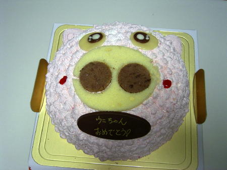 本日またまた無事に年を重ねたウニ母だす~~~余り重ねたくなかったけど(T▽T)アハハ!でもお誕生日は楽しいです毎年(*^m^*) ムフッ毎年ケーキをお贈りくださる方がいらして今年も可愛いケーキ頂いてしまいました去年は豚ちゃんのケーキだったなぁ~~ρ( ̄∇ ̄o) コレ今年はなーーんとくまさんのケーキ!!!ρ(´ー`) コレね!!!!可愛いしょ~~可愛い上に美味しいのこのケーキチョコレートケーキだったんだよ(*^m^*) ムフッそしてこの可愛いくまちゃんケーキとは別にもう1個今年送って下さった方がw(( ̄ ̄0 ̄ ̄))wワオッ!!これがねまた凄く素敵なケーキでしたo(*^▽^*)o~♪綺麗な桜色のケーキ!!ρ(・・。) コレ春にピッタリのピンク色可愛くて素敵で本当に美味しかったわぁ~~何だか毎年本当に年重ねるたびにとても素敵で嬉しい誕生日迎えてアタシσ(゜-^*)て凄い幸せ者だなぁ~~とシミジミ思いながら今夜は夕飯ケーキでしたです~~o(*^▽^*)oあはっ♪朝ごはんもケーキだなぁ~明日は(* ̄m ̄)プッ