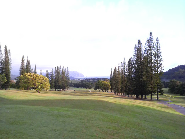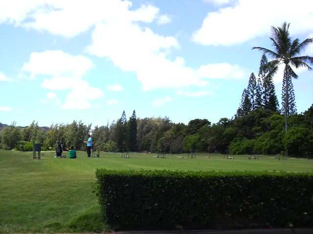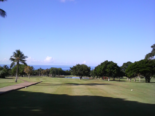今日は、朝5時起きして、northのカフクゴルフコースへ。こちらも、公営コースで、朝6:30には、もう何組かSTARTしてました。ここは、9HOLEしかありませんが、なんといっても、海沿いのリンクス風な作りで、自然の状態が、そのまんまのコース。こちらが、受付で、とても、古い感じの掘建て小屋です。とりあえず、うちらの前にSINGLEで来ていた、現地のおじさんがひとりでいたので、話しかけて一緒にROUNDすることに。なんといっても、目の前は、一面海です。もちろん、海風も強く、手強いコースかと思いきや、以外と、落とし穴(ハザード)がないので、それほど、難しくはありません。受付からの景色。7番 右は一面海です。4番打ちおろしです。3番からの景色です。9HOLE2回まわって、祝日料金で、14$はかなりお得でしたが、いかんせ、遠い!ワイキキから、70分かかります。こちらは、電動カートがありません。手引きのみのPLAYとなります。そのまま、ROUND後、NORTHの海でシュノケして、GO HOME!大変疲れました!