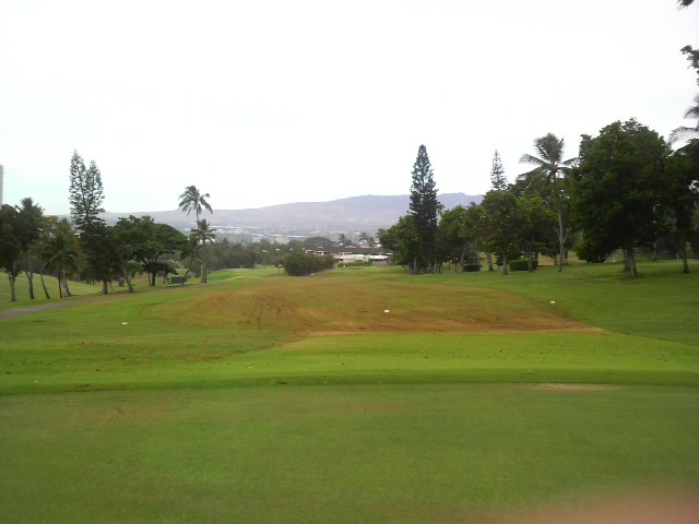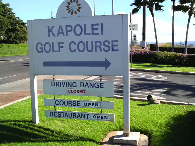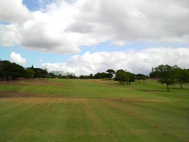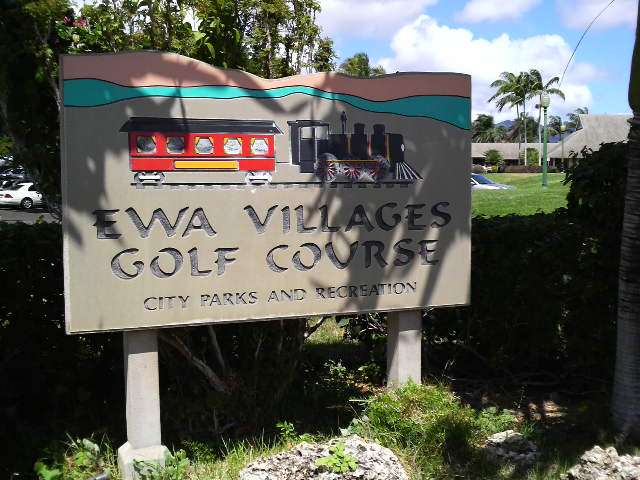 公営ゴルフ第4弾、エバビレッジです。http://www.co.honolulu.hi.us/des/golf/ewa.htm先日いった、WEST LOCHから数分の、EWAの町なかです。最初に今までの公営コースなかで、断然一番いいコースでした!これで、休日カート料金込みで、$24は、かなりお得です(ID要)!フェアーウェーは、先日のWEST LOCHより、芝が全然いきいきしていたし、GREENは、ま、こんな感じかなって。池あり、DOGLEGあり、ただ、海は一切見えませんでした。距離もあり、公営で、1番です。だけに、帰国前に絶対もう1回来ます!さて、コースですが、エバの住宅街に潜むコースで、とにかく、風が終日強いです。早速1番START HOLEで、右が、住宅が並ぶHOLEで、風に流され右に行ってしまいました。コースは、戦略性に富み、充分楽しめます!入り口2番HOLE 結構きれいな風景7番??だったかな。。成績。41PATが、いかんです!