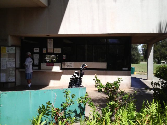 まずは、まずは、手始めにワイキキビーチから徒歩10分 アラワイゴルフコースへ。徒歩で、9:30頃、受付に行き、waiting listに名前をのせてもらい、うちらで、56/57という番号をもらい、待機。こちらが、受付。その間、練習場で練習し、10:30過ぎに名前を呼ばれ、11:00前いざ、プレー。一緒のラウンドに、日本から観光の会社員の方と、現地の定年退職されたおじいさんとの、プレイ。コースはというと、日本でいう、河川敷のような感じ。平坦で、これといって、癖もなく、練習ラウンドには、もってこいな感じ。こちらが、コース風景。この先が、1番ティー。。ただ、、甘く見ました。平坦だから大丈夫と思い、電動カート16ドルをけちり、手引きカート4$にしたのは、いいのですが、、、、日本でいつも、平坦なところで、カートでしか、プレイしたことない人間が、いきなり、こんな日差しが照りつけるところで、18HOLE 手引きによるスルーは、都会人には、無茶です。後半は、完全にバテバテで、歩くのがやっとでした。おかげで、後半ボロボロです。終了は、15:45 終わってからの、売店のビール、世界で一番 おいしかった!(ただの、缶ビールですが)出直しですね。これが、スコアブック。これで、プレーフィー12$です!!!(IDあればですよ)グリーン 固くて、とても、よくのびます!あと、風は、やはり、強く、もろに影響を受けます!でも、楽しかったです!安いから、また、行きます