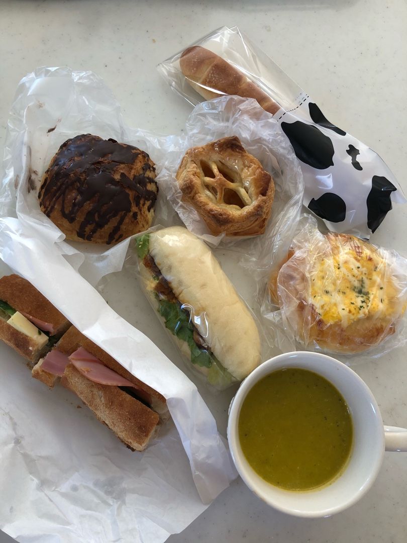 〜🥐パン祭りだ🥐〜先日は近所のパン屋さんが月1で開催している「パン祭り🥐」~店内全品100円です\( ˆoˆ )/✨~天気もいいし引きこもりの子供たちとチャリ族でお買い物してきました⤴🚴🚴🚴♬♬♬自粛生活してるけど「たまには息抜きです」と言い訳❓💧感染したら笑われますね(~_~;)~メロンパンも調理パンも全部100円❣~左下のバケットサンドイッチも100円👀‼️これは超お得感⤴︎買いました✌(笑)子供も4個ずつ買って夫の分も買ってなんやかんやで16個も買いましたヽ(^o^)丿♬案外出費しました(;^_^A月1と思うと「買っちゃえ~♬」と財布がゆるみます💦野菜不足になりそうだからかぼちゃのスープを添えて🎃~↓かぼちゃスープの記事はこちら↓~https://plaza.rakuten.co.jp/ccpurin/diary/201910200000/引きこもり生活だけど好きなだけ買ってスッキリしておいしいもの食べてホッコリして気分リフレッシュしていきましょ(^O^)/💕〜追伸〜食べきれずに翌日食べたアップルパイ🍎軽くチンして、軽くトースト。サックサクでジューシーでおいしかった♬これも100円✨↓↓❤パンおいしいですよね❤↓↓パン好きの人もそうでない人も「応援クリック」お待ちしてます🥐✨にほんブログ村↓お花のお菓子「東京チューリッローズ🌹」の記事はこちらからhttps://plaza.rakuten.co.jp/ccpurin/diary/202003010000/↓お菓子パーティー「大好物いっぱいでワクワク💕」の記事はこちらからhttps://plaza.rakuten.co.jp/ccpurin/diary/202001090001/