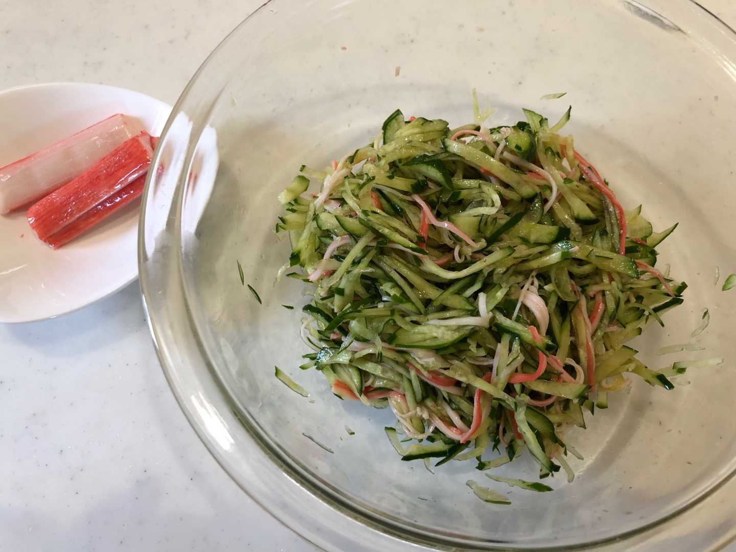 きゅうりとカニカマのサラダをおさらいしましょう♬
