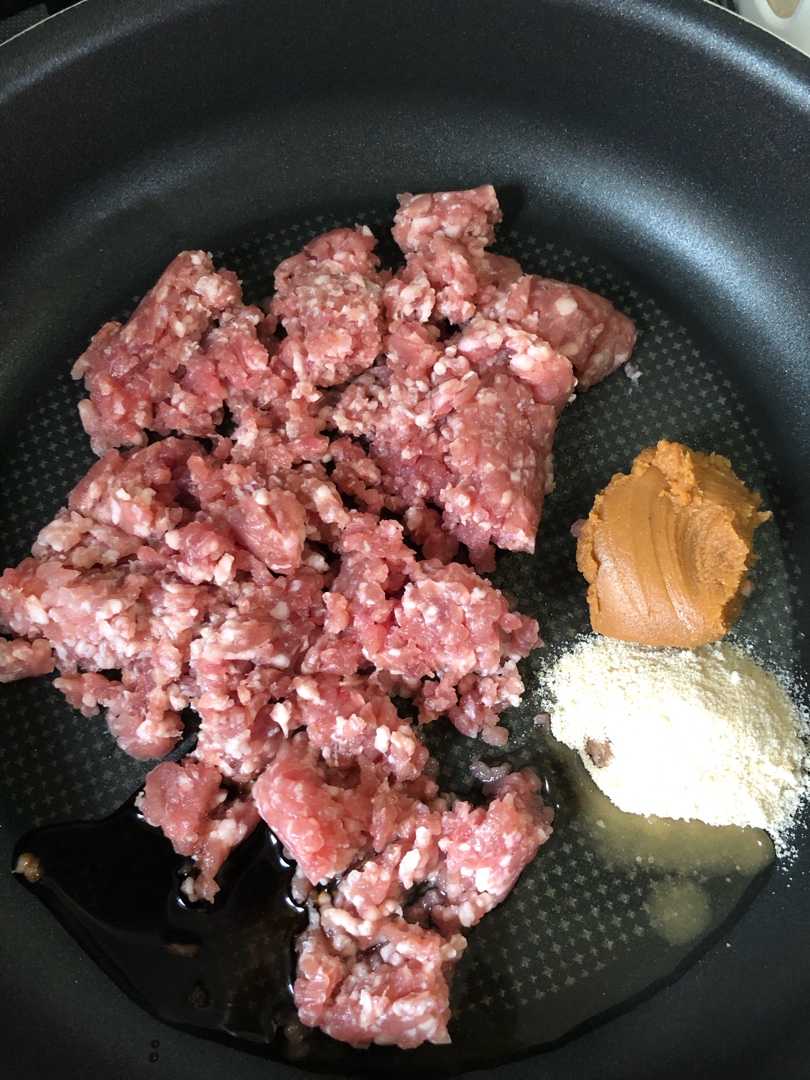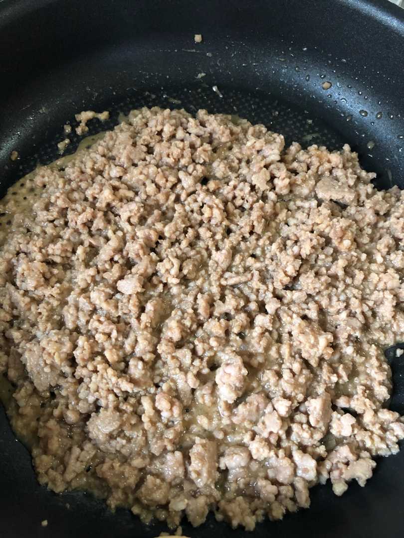 1.豚ひき肉を★調味料を入れて炒め煮する