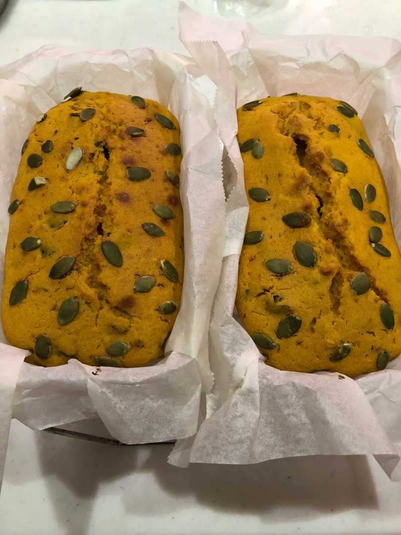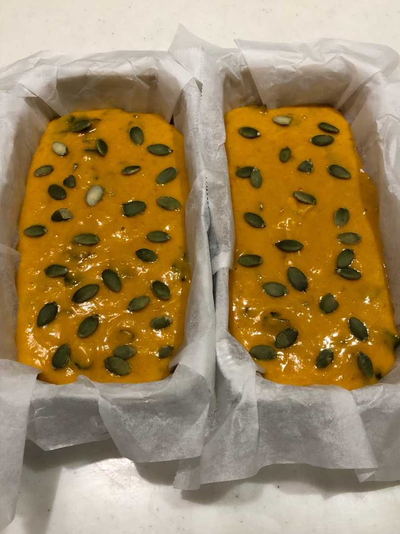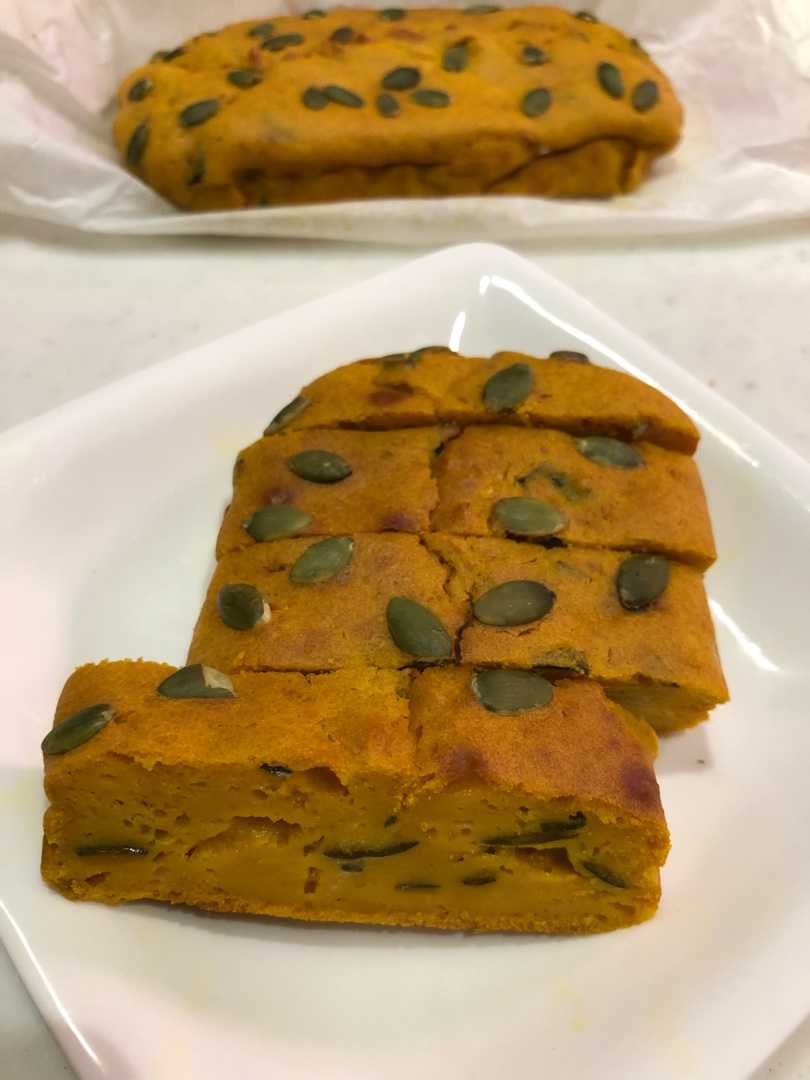種なしでかぼちゃケーキを焼いていました(◞‸◟)
