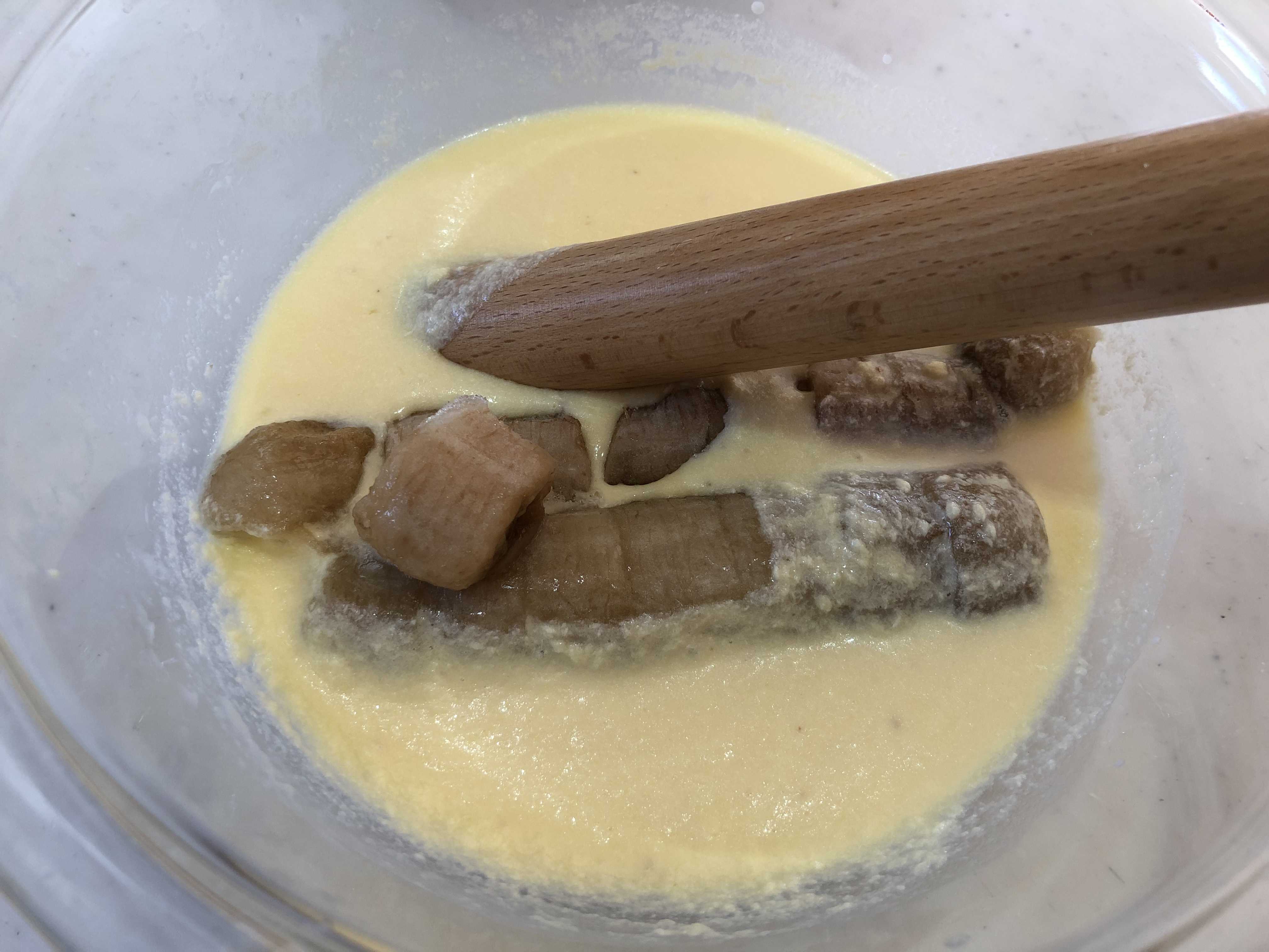 「冷凍バナナでもバナナケーキ作れますよ~」