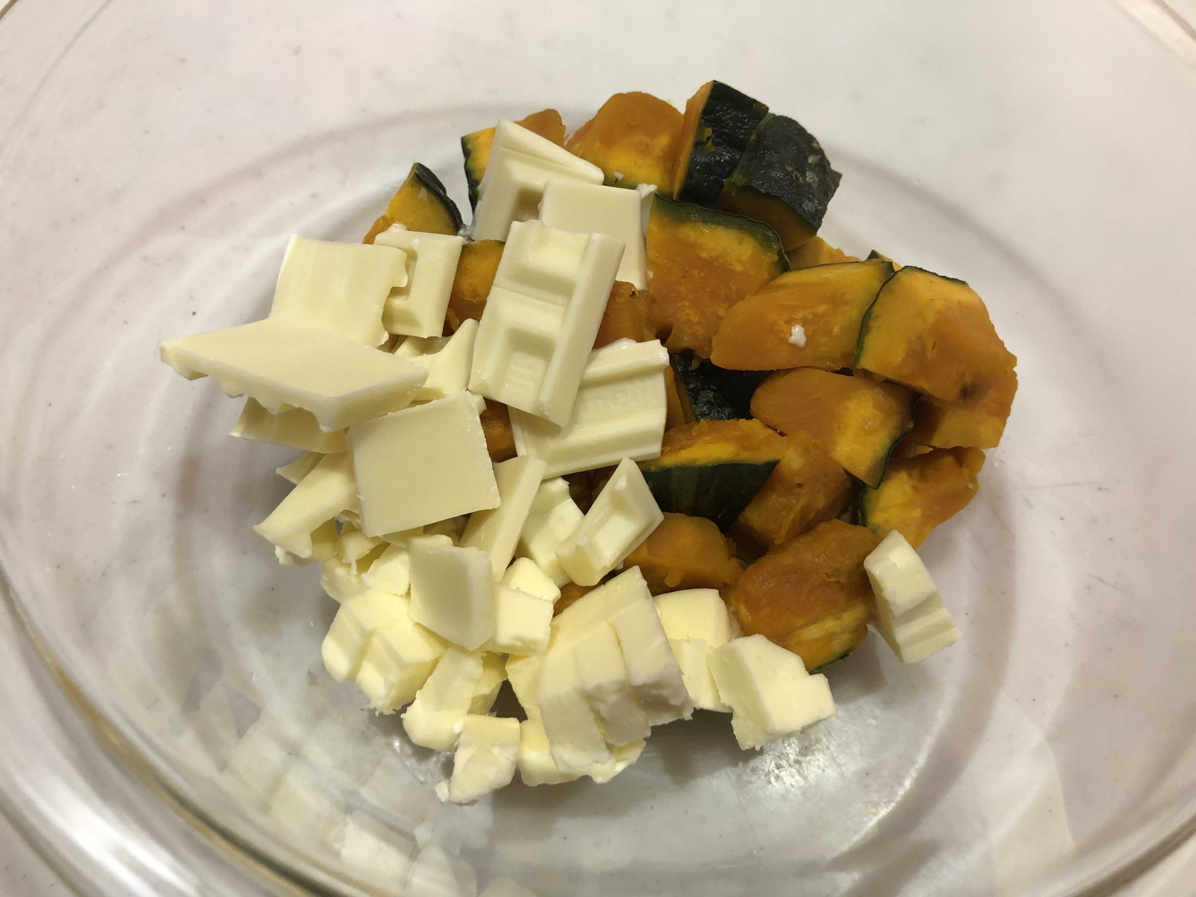 2.かぼちゃが温かいうちにバターとチョコを混ぜる