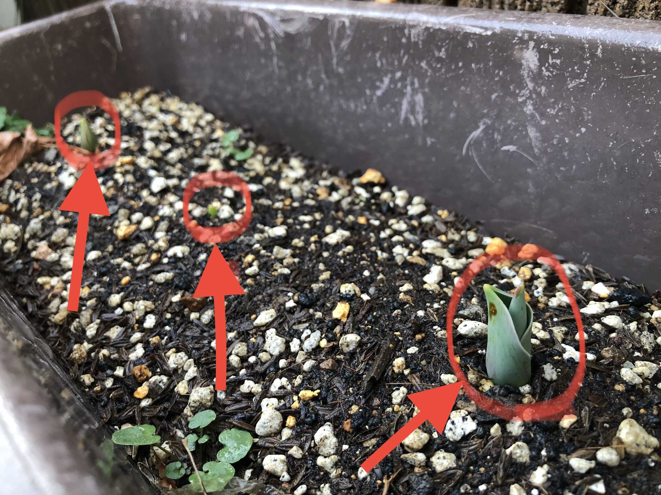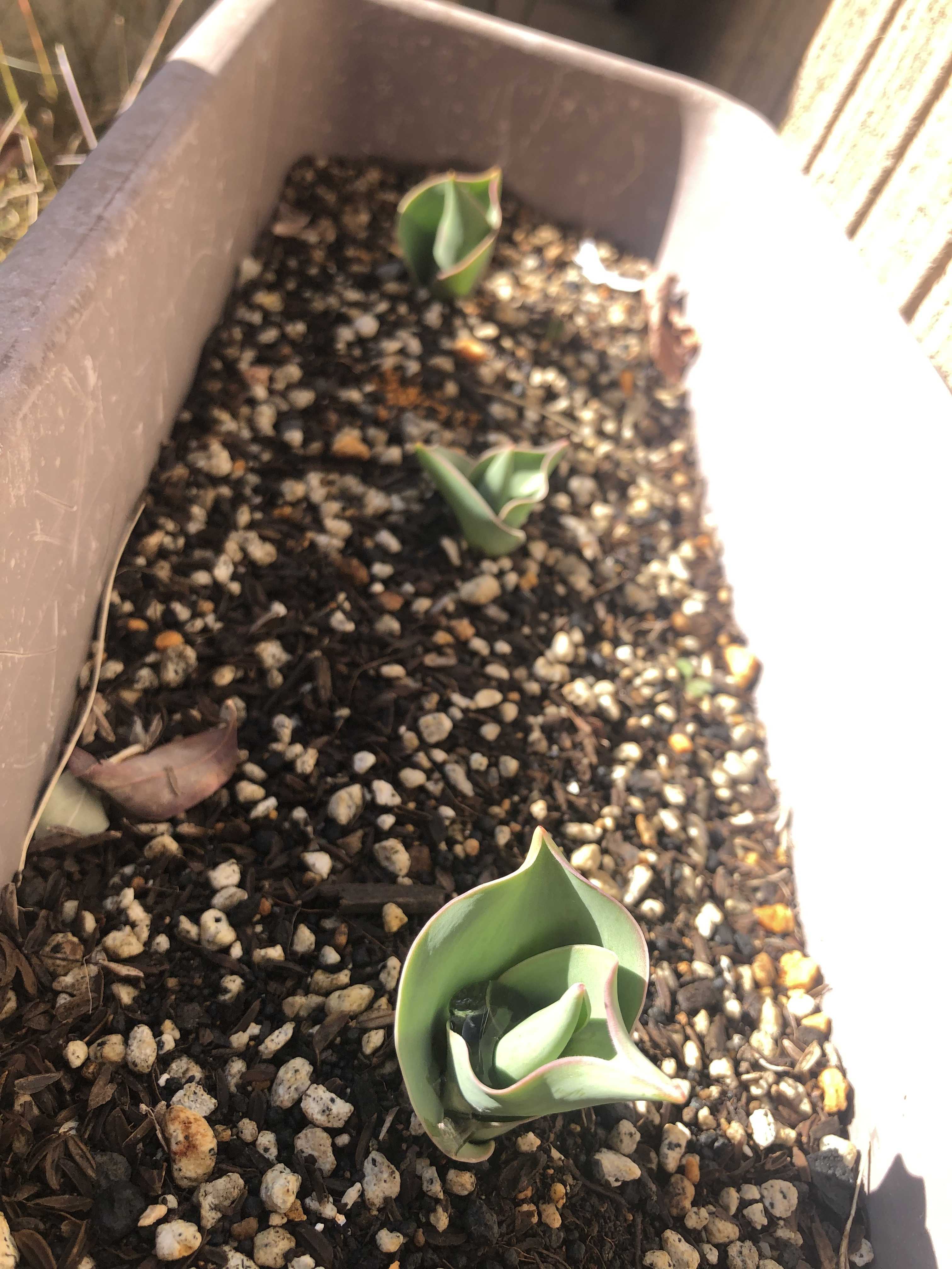 そして現在2月中旬のチューリップの芽は