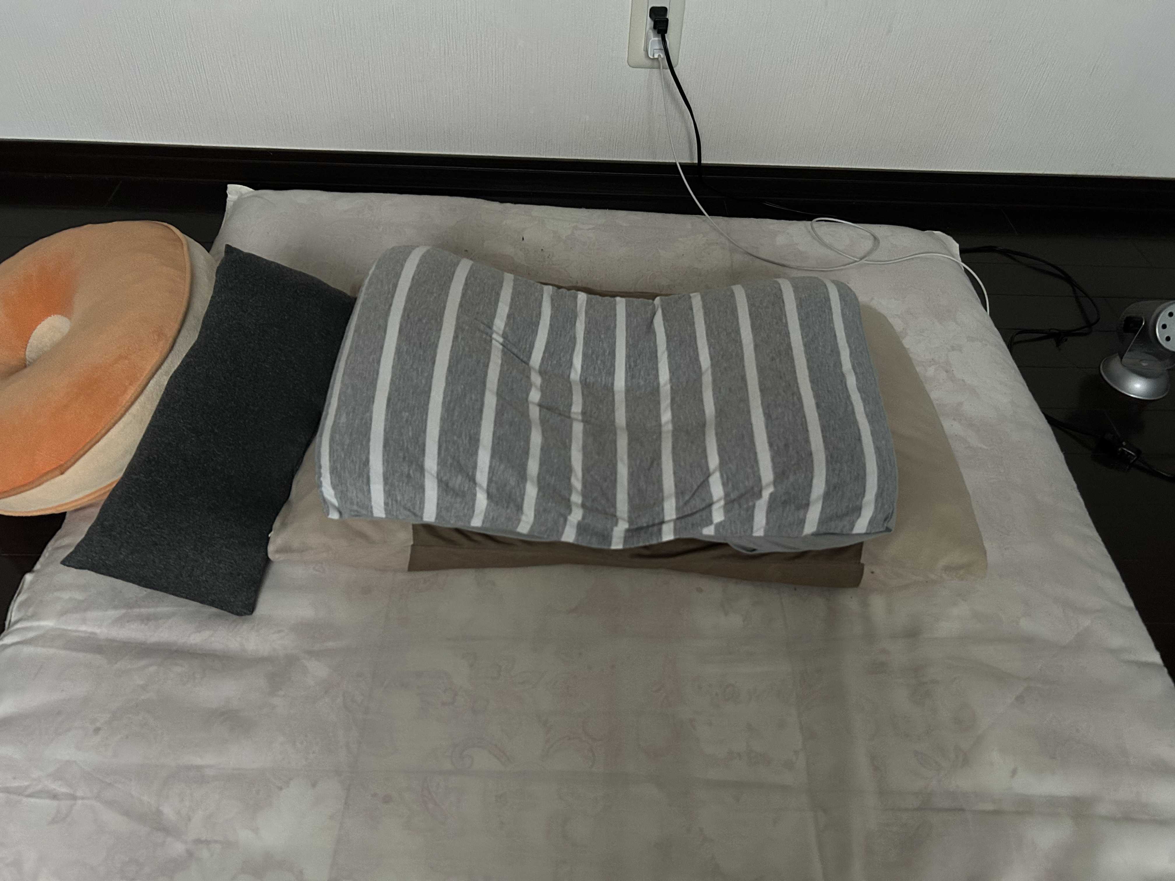 昔使っていたペタンコ枕をおいて