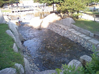 まずは、ローラー式すべり台!さらに渓流に似せて作られたジャブジャブ池と、