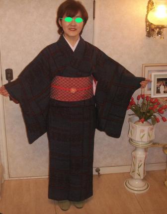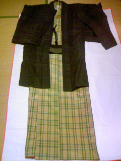 去年の12月24日に曾祖母の着物をもらった話を書きました。そのとき、ちらっと「夫の着物ももらいました」と書いたままずーっとご披露もせず過ごしてきたのを、突然思い出し、本日お披露目します。じゃじゃじゃーん。は、派手っ!私の茶羽織(12月24日の写真を見てください)とおそろいの着物です。もともとこれは女物のアンサンブルだったのを夫の着物と私の茶羽織に仕立て直したわけです。いやー、なんと表現して良いのか。遊び人の風情がプンプンするではないですか。谷崎潤一郎の「細雪」に出てくる「啓ぼん」が着てふらふら歩いていそう。「いやー、何とも派手やねぇ。着られる?(着る気ある?)」と聞くと、あまり着物を知らない夫「よぅわからんわ」どうしても着たくない、とは言っていないので一度着てもらいましょ。羽織は黒く見えるでしょうがこんな柄です。もしかして絣?多分これは祖母の着物の仕立て直しだと思います。たまに男性用の着物地を女性が仕立てて着ていらっしゃるのはお見かけしますが反対は見たことがありません。ええんかいな?さて、夫と着物で外出をしたいと思ったところ、問題発生。それは足袋と草履がないということ。夏の浴衣のときは何とか合うサイズの下駄を見つけましたが29cmの足袋や草履と言うのは、なかなかありませんよ。草履は母が見つけてくれてプレゼントしてくれるとか。足袋は楽天市場でようやく見つけて購入しました。メール便OK!【足袋4枚こはぜ】最高仕立て テトロンブロード 「晒裏/ネル裏」(28.5cm~30cm特別サイズ)私の22.5cmの足袋だったら一足500円以下で見つけれるのに、不経済だわ。届いたのを見て「でか~い!」夫に履いてもらったら問題発生。確かに足の長さはぴったりだったけど、足袋のほうが横幅が広すぎてぶかぶか。そのうえ、指の長さが合っておらず、親指と人差し指の股の部分が食い込んで痛いそうです。見た目も妙なところがシワシワで、やぼったい!着物の本では「足袋はぴったりと足に添っているのが良い」と書いてあります。そんなもの読むまでもなく、足に添わない足袋はカッコ悪いです。くー!こうなったら足袋専門店に出かけていって採寸、オーダーするしかない。(メラメラ)規格外サイズって本当にやっかいですね。今日の日記を気に入ってくださったら↓ポチっとクリックお願いします。