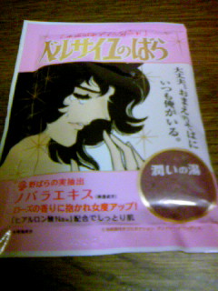 昨日、友人が「もう知っているだろうけど、プレゼント」と小さな包みをくれました。ん?なんだろ?と開けてみて唖然。知らん、知らん、こんなの知らんかったよ!「ベルサイユのばら」入浴剤!アンドレは「永遠のボディーガード」で「大丈夫。おまえのそばにいつも俺がいる。」なんてセリフ付き。ボディーガードという位置づけはあんまりな気もするけれど。色はローズで、野ばらの実から抽出された野ばらエキスとビタミンC、ヒアルロン酸Na配合。ローズに包まれて秘めた女らしさが目覚めるそうです。フェルゼンは「気高き愛の伯爵」で「海より深い一途な愛で、あなたを包む」ですぞ。色はブルー、まさにフェルゼンの色。フランス産自然塩(スウェーデンでは塩は採れないの?)ゲランドの海塩と海藻エキスエキス配合。至福のタラソで身も心もリラクゼーション…。笑える~。「アランと、ジェローデルもあってね、それは わたし用にしたの」ほほー。アランとジェローデル、どんなキャッチフレーズで、どんな色?ベルサイユのばら アラン入浴剤(多汗の湯)アランは赤なのね。アランくん「お前のすべてを俺が見守ってやるぜ」と言っております。レパゲルマニウムやトウガラシエキス、ブラックソルトなどを配合したゲルマニウム入浴剤、多汗の湯っていうのが熱血漢アランらしいわね。ベルサイユのばら ジェローデル入浴剤(とろみの湯)ジェローデルは白か…。「貴女(あなた)を優しく受けとめる、それが私の使命」おお、いかにもジェローデルな言葉遣い。それなのに、今年宝塚歌劇団で上演する「外伝・ベルサイユのばら」ではフェルゼンの妹のソフィアと恋に落ちてしまうのか!そんなのジェローデルじゃない!おっと、話がそれました。成分はパパインやホエイ、とろみ入浴剤(とろみ湯)です。おもしろいですねぇ。アンドレと、フェルゼンも楽天市場で買えますよ。ベルサイユのばら アンドレ入浴剤(潤いの湯)ベルサイユのばら フェルゼン入浴剤(タラソの湯)1ダースまとめ買いすると、ちょっぴりお得ね。入浴剤で驚異のリピート率!モテ肌になれちゃう!ベルサイユのばら ジェローデル入浴剤ヨーグルトの香りこれぞ本当の「外伝・ベルサイユのばら」ですね。今日の日記を気に入ってくださったら↓ポチっとクリックお願いします。