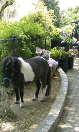 とある公園の一角に現れると噂のポニー。花屋さんの看板ポニーだという話を以前からちらほら聞いていたものの会ったことがありませんでした。それが今日、やっと会うことができたんですよ。名前は梅ちゃん。でも男の子ですって。お花を買うと、りんごかニンジンを一切れ渡されて、梅ちゃんにあげる権利発生。これは梅ちゃんがお客さんを好きになれるようにと、花屋のご主人が考えたしつけの一環。私も苗を買って、梅ちゃんにリンゴを上げたことは言うまでもありません。梅ちゃん、いろんな芸ができるんですよ。「欲しい人」といわれると「はーい」と前足を片方上げる。「握手」でお手。「チューして」というと頬に顔をスリスリ。「ジューの口は?」と言われると口を開いてポーズ。この「ジュー」とはジュースのことで、ミルクティーが一番好きなんですって。この芸を披露されて、内心複雑な私。というのは、我が家の長男ディディエに、しつけていたのと一緒。私が何か食べていて物ほしそうにしているディディエに「ディー君、欲しい人は?」と言うと「はーい」と手を上げるようにしていたんですよ。ふっふっふ、こんな芸ができるのはディディエだけだろう、と思っていたのにポニーの梅ちゃんもできるなんて。ちょっとショック。とはいえ、可愛い梅ちゃんと触れ合えて、楽しいひと時でした。今日の日記を気に入ってくださったら↓ポチっとクリックお願いします。