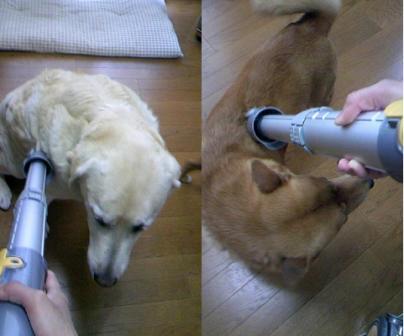 以前、うちのわんこたち、あまりに抜け毛がヒドイので掃除機で直接体を吸っていると書きました。最初は逃げ回っていたのですが、そのあと「Good Boyだったね」とご褒美をあげるようにしたらMIX犬のポンが自ら「Good Boyしたい」と擦り寄ってくるように。それをみてラブラドールのディディエも…。ということで、我が家の掃除タイムは「Good Boyタイム」でもあります。なかなかうまく写真に収められなかったのですが、やっと成功しました。ぶれずに撮れた~。ディディエ(左)はイヤイヤなのが写真で見てもおわかりかと思います。それに対してポン(右)は尻尾がピン!普段は臆病なポン、嫌だったらこんなふうに尻尾を上げたりしません。「このあとご褒美だ!」と思っているのでしょう。そして期待通り…ご褒美を目の前にして正座する二人。動物虐待…なんておっしゃらないでね。自分たちから「やって、やって」と来ているんです。それに、ほとんどの日は、わんこを外に出してから掃除機かけていますから。(^^;)今日の日記を気に入ってくださったら↓ポチっとクリックお願いします。