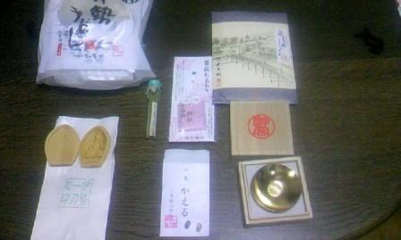 伊勢旅行のお土産をこーんなにたくさんいただきました。左の上から伊勢うどん((有)かいだ食品)文殊菩薩の一刀彫(伊勢神宮)漢方香…皮膚の痒みにきくお香ですって。 カモミールオイルと漢方薬の大黄・梔子などが配合されています。 (悠々庵)芸能おまもり…天照大御神が天岩戸にお隠れになった時、その前で踊って 天照大御神を誘い出したアマノウズメノ命にあやかって。 (佐瑠女神社)二見かえる…金銀の小さなカエル(二見興玉神社)子持ちしぐれ…あわびに数の子と昆布を絡ませた佃煮。 (伊勢せきや)神盃(伊勢神宮)いやー。こんなにいただいていいのかしらというくらい。ありがたいことです。文殊菩薩は私の干支の守り神。小さな袋に入れてバッグにつねに忍ばせておきます。芸能おまもりは定期入れにつけて、いつも持ち歩こう。二見かえるはもちろんお財布に。神盃は盛り塩の器に使わせていただきます。旅先で、私が喜ぶ様子を想像して選んでくださったのかしら。本当に嬉しいことです。食べ物のほうは、さっそく食べています。子持ちしぐれ、ご飯がどんどん進みます。お酒にもよく合う。今日のお昼は伊勢うどん。極太の麺にたまり醤油をかけていただきます。温泉玉子を作って、カツオ節、白ゴマとともにトッピングしてみました。おお、結構上手にできたぞ、黄身がトローリ。ああ、おいしかった~。麺は意外なほど柔らかくて、シコシコ麺の讃岐うどんとはまた異なった美味しさです。製造元は違うけど、楽天でも扱っています。送料無料【伊勢一】伊勢うどん(5食入)今日の日記を気に入ってくださったら↓ポチっとクリックお願いします。