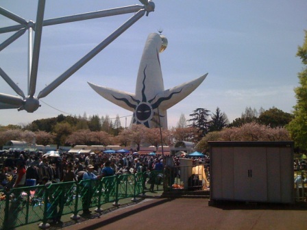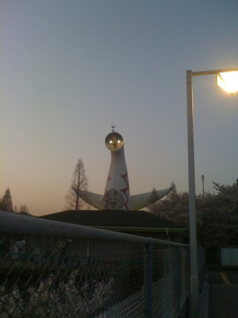 まずは昨日のブログの補足説明から。***昨日の記載抜粋***問題は帽子を脱ぐお芝居後半とフィナーレ。史実に基づくならば、芭蕉は恐らく坊主頭。「坊主にしても良いねんけどね、でずっぱりでフィナーレまで行くから髪の毛を整え直す暇がないネンよ。フィナーレを坊主頭で踊るのもねぇ…」(坊主頭で踊る先生を想像してちょっと笑っちゃいました。ごめんなさい)「普通の男役風にしても良いけれど、あんまりテカテカに固めると お芝居の方が変でしょ、江戸時代なのに」*****私がフィナーレと書いたので、もしかしたらお芝居の後でともみ先生(元宝塚歌劇団 立ともみ)とバンケイさん(元宝塚歌劇団 萬あきら)が燕尾服か、タキシードを着て踊る…と思われた方がいらっしゃるかも知れません。ごめんなさい。そうではないんです。バウホールの日本物のように、お芝居の後、和装で踊られるのだと思います。説明不足ですみません。さて、写真は大阪府吹田市にある万博記念公園の太陽の塔。昨年3月27日に、大阪万博40周年を記念して、目玉がLEDで恒久点灯されました。東日本大震災のあと、しばらくは点灯を自粛していたようなのですが再び点灯されました。光ってるの、わかりますか?何だか嬉しいものです。あの目玉の部分に、人がたてこもったこともありましたっけねぇ。(遠い目)点灯イベントの様子はYouTubeで見ることができます。↓40年ぶり!!太陽の塔目玉 恒久点灯ちなみに、ワタクシの大阪万博の思い出はこちらに↓「茶々吉の着物生活」2011年3月8日 桜ひとひらと大阪万博今日の日記を気に入ってくださったら↓ポチっとクリックお願いします。