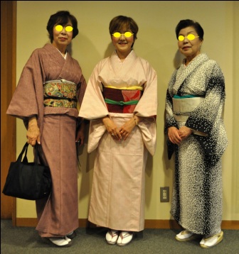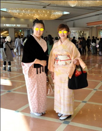 行ってまいりました。国立文楽劇場小ホールでの公演「風雅の旅」に。松尾芭蕉を主人公とした和物、ということもあり客席にお着物姿の美女発見。スリーショットでお願い致しました。真ん中が私です。向かって右の方は親子でいらっしゃっていました。私はお嬢さんのお洒落な靴に目が釘付け。「可愛い靴ですね。ブーツ?」と思わず話しかけてしまったら「いいえ。タビです」は?旅? いえいえ、そうではなくて足袋。足の甲の部分が大きく空いた靴に、ドット柄の足袋を合せてらっしゃるの。おおおおお!と思わず声をあげてしまいました。お母様のお着物の柄とシンクロしているし、タイトル「風雅の旅(たび)」のダジャレンジャーにもなっていてこの方のお洒落テクぶりはタダモノではないですね。この足袋、マジックテープ式のリバーシブルなんだそうで。反対側のレインボーな柄はどんな服(あるいは着物)に合せるのかしら。それも拝見したいです。「風雅の旅」の感想は、もしかしたら明日(もう今日だけれど)になるかも。一言だけ先に書いておきますと、コーザイさん公認の髪型は見られませんでした。芭蕉は最後まで帽子着用だったのです。何の話かお分かりにならない方は、良かったらこちらを読んでみてくださいね。→4月12日 芭蕉の悩み@「風雅の旅」(元宝塚歌劇団 立ともみ主演)今日の日記を気に入ってくださったら↓ポチっとクリックお願いします。