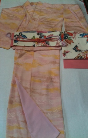 今日は宝塚歌劇団月組「バラの国の王子」を見に行きます。コーデは、日曜日に日舞の発表会で着た「春の群雲」に蝶の帯を合せました。蝶は3月、4月の柄なので季節外れになる前にと。今回、私にとって初めての試みとして、帯揚げのかわりにスカーフを使ってみます。このスカーフは、黄色やピンク、グレーなど多くの色がまちまちの形に染められていて、帯揚げとして結んだ時に、表面にどんな色が出てきて着物にどんな彩を添えるか、ドキドキわくわくです。実際に結んでみたら、意外と冴えない場合もあるかも知れないけれどもね。帯締めは二色染め。それでは「バラの国の王子」「ONE」の感想は、また夜遅くにでも。今日の日記を気に入ってくださったら↓ポチっとクリックお願いします。